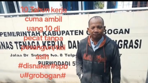 Mantan karyawan OB (Office Boy) SPBU 44.593.06 Gubug Sri Tarmuji dan kedua temannya terpaksa harus melapor ke Dinas Tenaga Kerja (Disnakertrans) Kabupaten Grobogan setelah dirinya dan kedua temannya diberhentikan sepihak tanpa pesangon, Senin tanggal (02/06/2025).