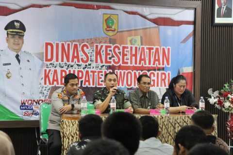 Pertemuan yang berlangsung di ruang pertemuan Arjuna Dinas Kesehatan Kabupaten Wonogiri ini dihadiri oleh jajaran Kapolres, Dandim, Plt. Kepala Dinas Kesehatan, serta perwakilan dari Satuan Pelayanan Pemenuhan Gizi (SPPG) dan UPTD Puskesmas se-Kabupaten Wonogiri.